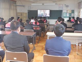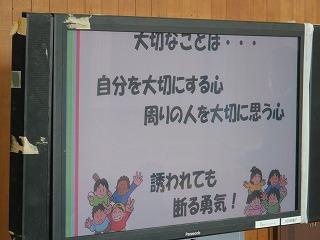 子ども達は、人権についての話を人権擁護委員からお聞きした後、「悩まずアタック 脱・いじめスパイラル」のビデオを視聴し、自分の命・友達の命を大事にすることについて真剣な表情で考えていました。
