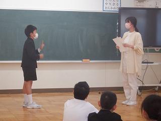 10月25日(火)1限目、2年2組の子ども達が、『お手紙』の音読劇をしていました。