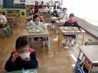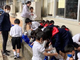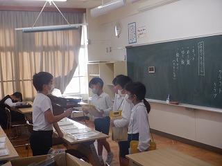 10月26日(水)27日(木)5年生が調理実習を行いました。今回は、自分で朝食を作ることができるようにと、ごはんとみそ汁作りに挑戦していました。グループで協力しながら仲良く作っているので、調理室は料理のいい匂いと子ども達の温かさであふれていました。