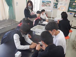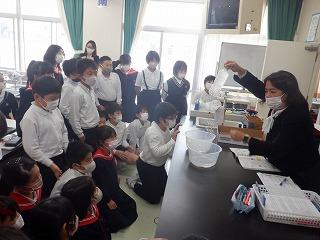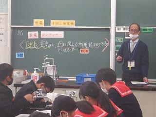 11月21日(月)県教員総合研修センターの指導主事をお迎えして、6年2組で理科の研究授業を行いました。子ども達は、手回し発電機で起こした電気をコンデンサーに蓄電し、オルゴールやモーター・豆電球につないで、貯めた電気が音や運動・光に変えて利用できることを実験で確かめていました。