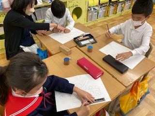 3年1組では、コンパスを使って算数の図形の問題に取り組んでいました。