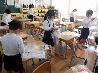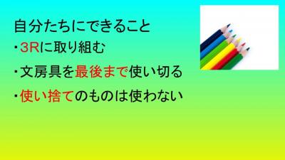 4年生は、総合の「自分たちにできることを考えよう」の学習で、環境問題について調べたことをポスターやパンフレットにして、校内や地域に広める活動を行っています。