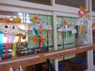 出来上がった作品は、廊下に掲示しました。風に揺らすのが楽しみですね!