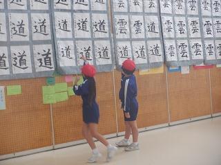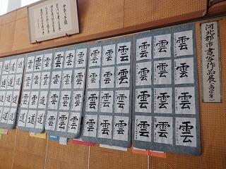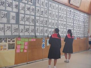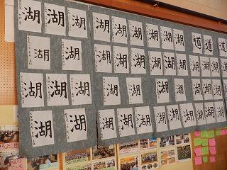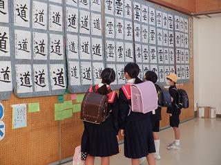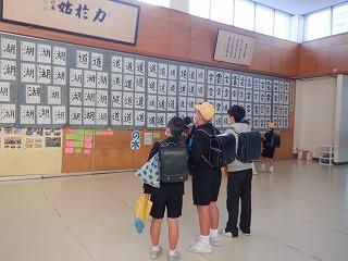 11月21日(月)22日(火)の2日間、4~6年生の河北郡市小学校の代表児童の書写作品が本校に展示されています。本校代表児童の作品も、丁寧に仕上げた素晴らしい作品ばかりでした。子ども達は、プレールームに展示された各校代表の作品をしげしげと見つめ、作品のよさを味わっていました。