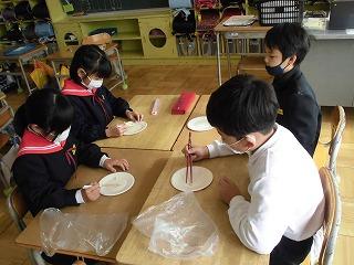 2組さんの様子です。正しい箸の持ち方で豆をつまむことができるか挑戦していました。
