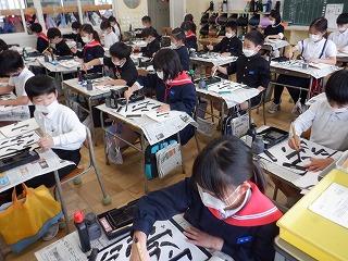 12月1日(木)3年1組の子ども達が、毛筆で「小」の字を練習していました。点とはねの穂先の通り道や筆圧について考えながら、集中して書いていました。3年生から始めた毛筆ですが、筆を持つことにも慣れてきたようでした。