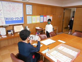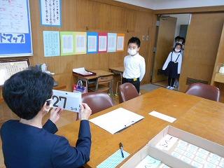 昨日12月1日(木)から、2年生のかけ算校長先生検定が始まりました。今月のかけ算検定①では、1~5の段から出された10問の九九カードの答えを、正しく素早く答えることができたら合格です。子ども達は、緊張しながらも合格目指してがんばっていました。