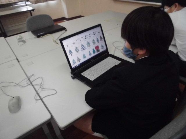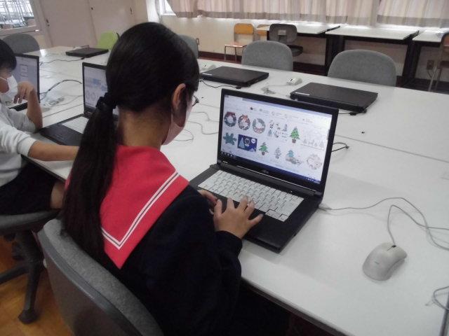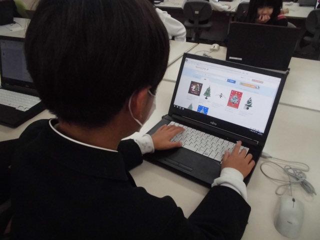 12月5日(月)5年生が、パソコンサポートの先生と一緒にクリスマスカードを作成しました。画像の挿入の仕方や文字のデザインの変え方などを教えていただき、子ども達は、「どんなクリスマスカードにしようか」「どんな画像を入れようか」「どんなメッセージにしようか」など、一人一人自分のイメージしたカードを作成しようと集中して取り組んでいました。
