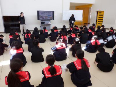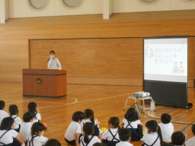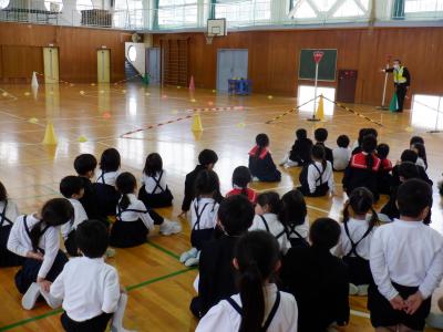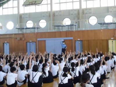 21日(金)5限は、交通安全教室を行いました。警察署の方から、安全な歩行のために3つの大事なことを