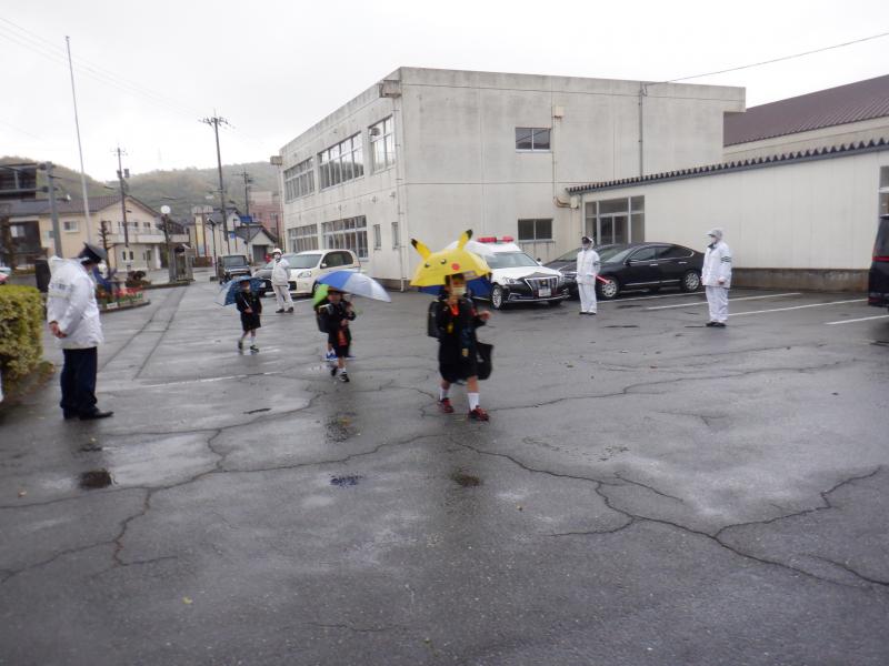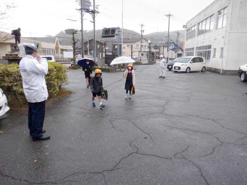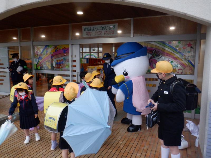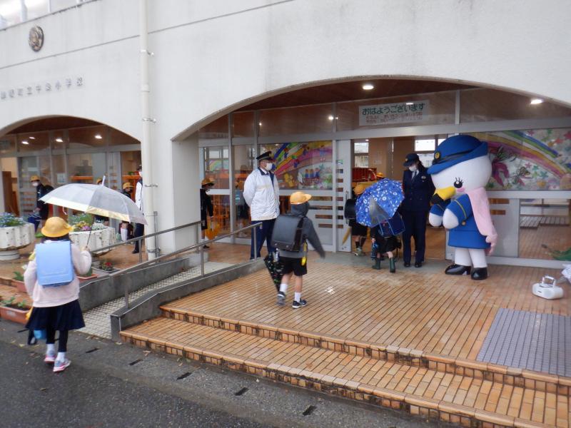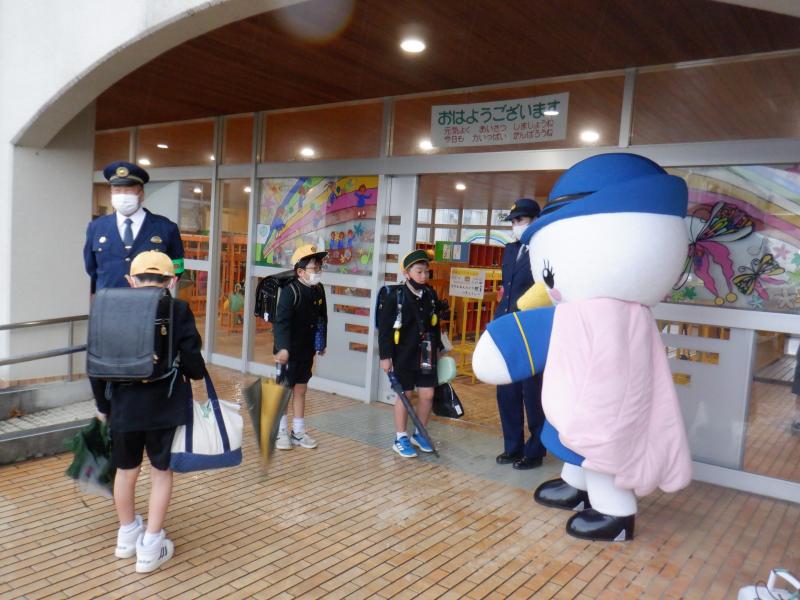 また,津幡警察署のマスコットキャラクター「白鳥係長」も見守り活動に来てくれて,子ども達の元気なあいさつに喜んでいました。