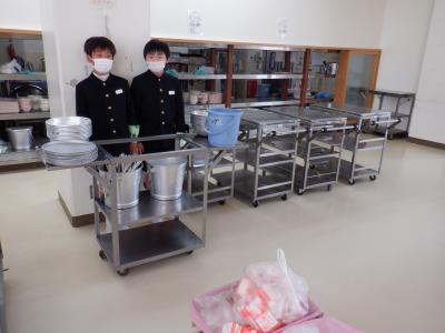 給食委員は、ランチルームに戻ってきたワゴン車から、お玉やしゃもじを回収していました。
