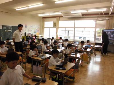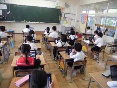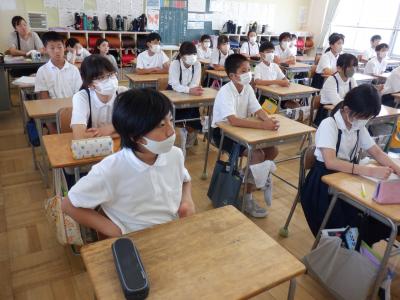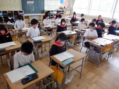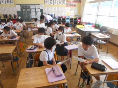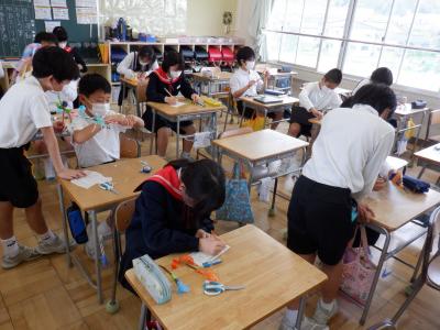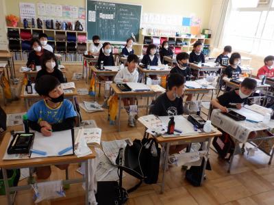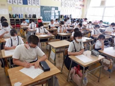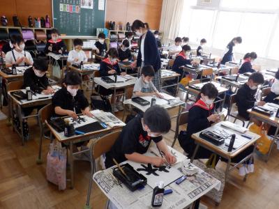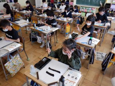 4年生は、社会科、書写の学習の様子です。4年生も学習に集中しています。