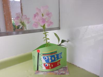 新しい花を生けてくれました。花器の飾りも「こいのぼり」になりました。