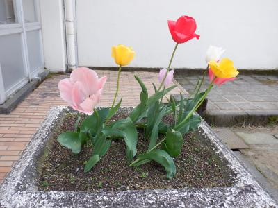 小運動場のチューリップも、とても大きな花を咲かせています。花に囲まれていると、心がなごみます。