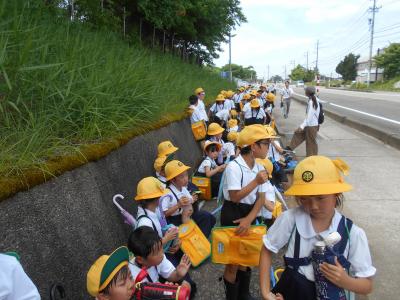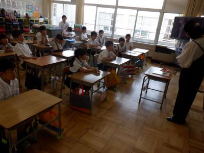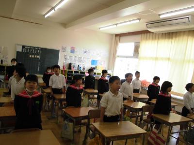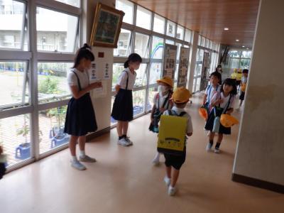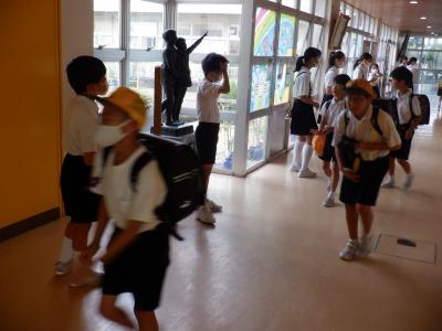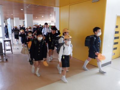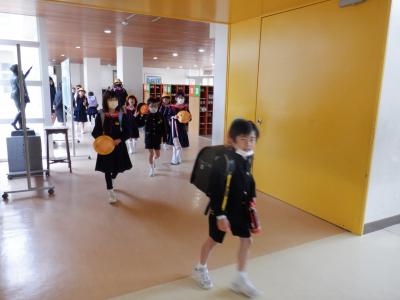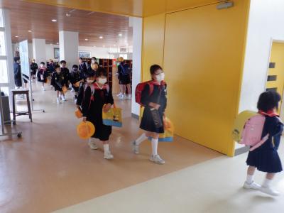 1年生は、3限後引率の先生方や学童保育の指導員さんと一緒に下校しました。