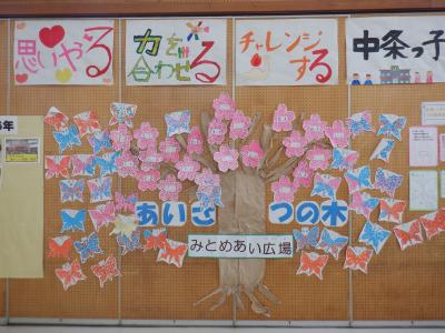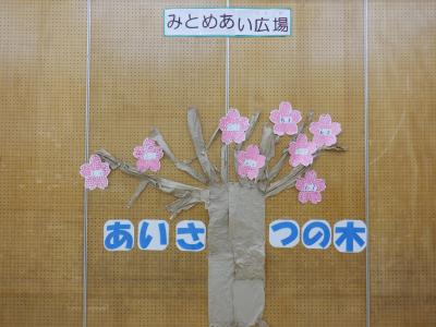 集めて「あいさつの木」に花を咲かせる取組をしています。