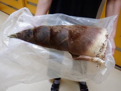 朝、調理師さんが「今日のたけのこご飯のたけのこは、津幡産のこんなに立派なたけのこです。」