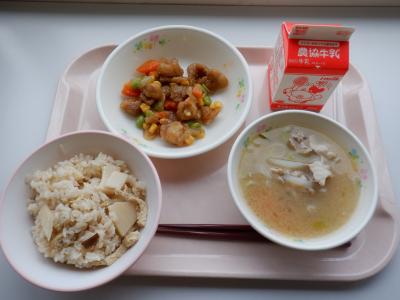 4月26日(水)、今日の給食のメニューにたけのこご飯がありました。