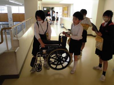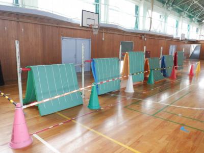 教えていただきました。その後は、体育館に作ったコースを実際に歩いてみました。