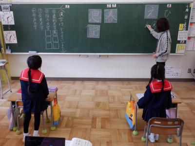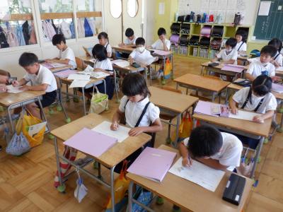 1年生は、国語でひらがなの練習をがんばっています。算数では、数の学習も始まっています。