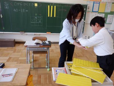 2年生は、国語「ふきのとう」の学習で役割を決めて音読をしていました。算数ではひっ算に取り組みました。