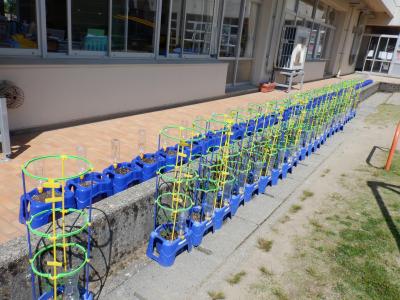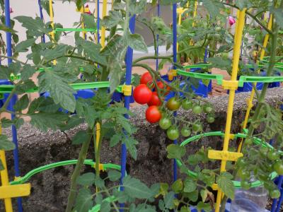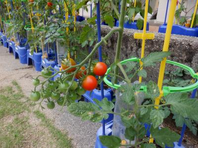 2年生が育てているミニトマトが、どんどん赤く色づいてきました。