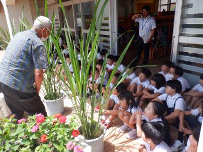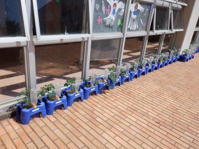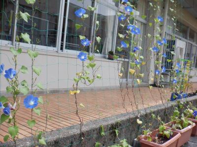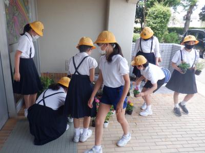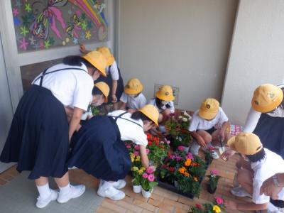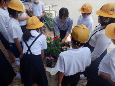 20日(木)、学校内にいつも季節の花を飾ってくださる中西さんが、お花の様子を見に来てくださり、