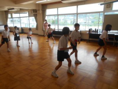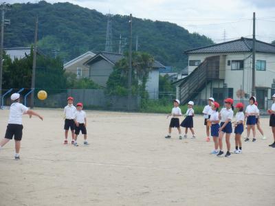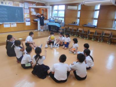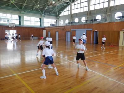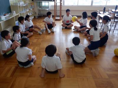 2年生は、1,2組合同で体育をしていました。授業の最後に振り返りをしていましたが、話し手の方にさっと