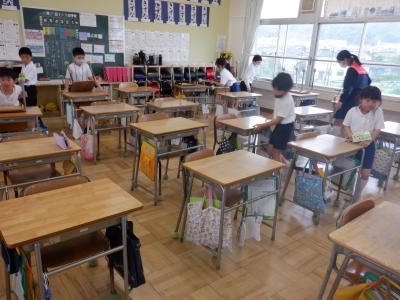 同じ列の中での座席替えです。「よい姿勢になろう」と先生が声をかけると、背筋がピンと伸びました。