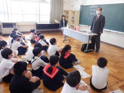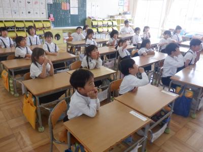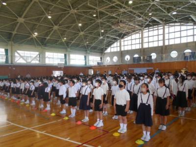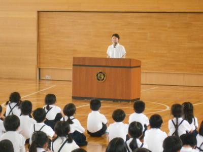 子ども達は,先生方から学習面・生活面・行事面等の話を,目と耳と心の3点セットで聞いていました。高学年らしい落ち着いた雰囲気でした!