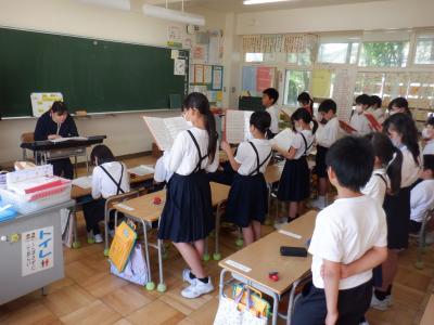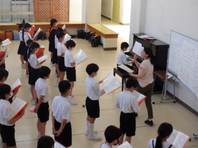 今年度に入り換気をしながら音楽室での学習を再開しました。