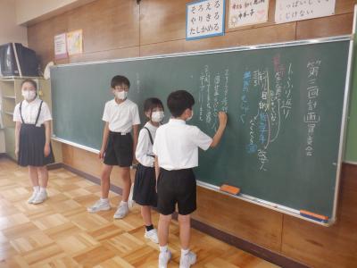 学活では、自分たちで司会や書記をして、話合いを進めています。