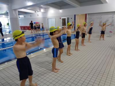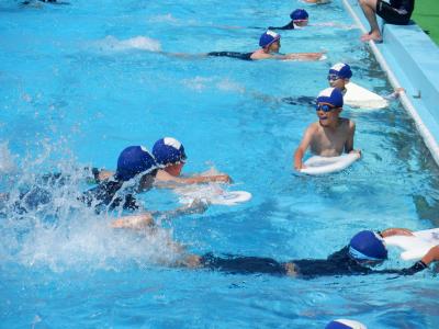 5年生は、クロールや平泳ぎで、少しでも長く泳ぐことを目指して学習します。