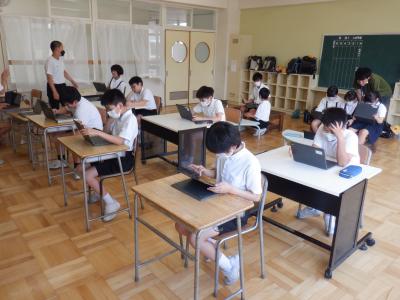 この日は書写の時間に、自分の書いた硬筆ノートのページを写真で撮り、提出ボックスに提出して