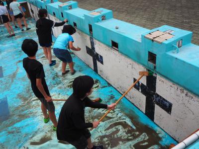 計画委員は、プレイルームの壁面に飾り付けをしていました。