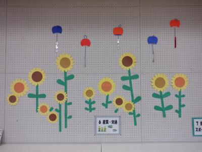 読み聞かせの後には、図書館の壁面を夏らしいひまわりの花などで飾ってくれました。