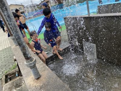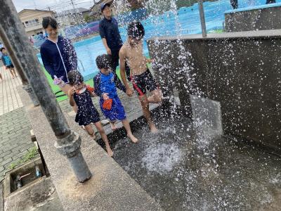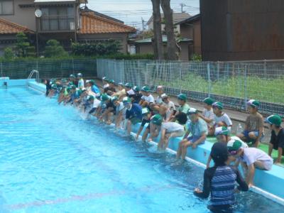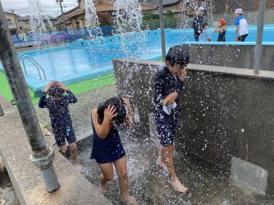 今週は、梅雨の合間で天気に恵まれ、多くの学年が水遊びや水泳を行っています。