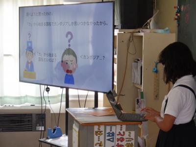 6年生は、総合的な学習「広げよう、世界を見る目」で、自分が調べた世界の国について発表をしていました。