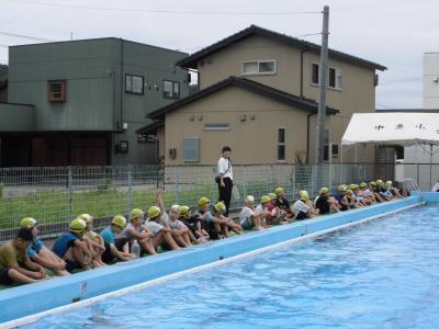 学年全体で一緒に学習しているため、取り組む内容ごとにグループをつくり、泳力を高めるために学習しています。