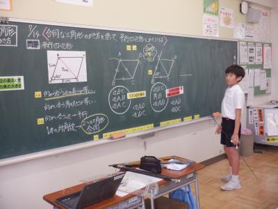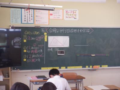 5年生の算数「合同な平行四辺形の書き方」の様子です。