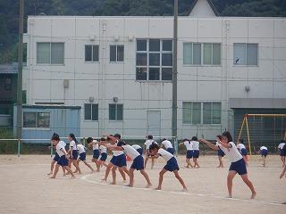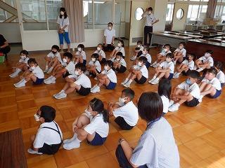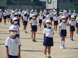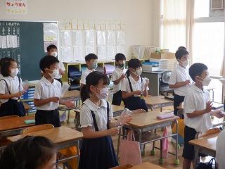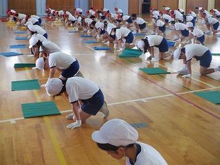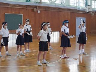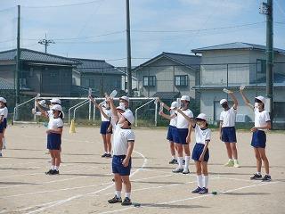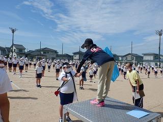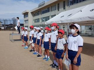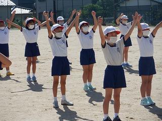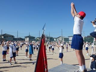 9月26日(月)全員で、運動会の準備体操の練習をしました。体育委員会児童が前に立ってお手本を示し、みんなで動きをそろえる練習をしました。運動会プログラム1番の種目なので、動きと気持ちをそろえてスタートしたいですね。