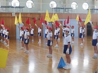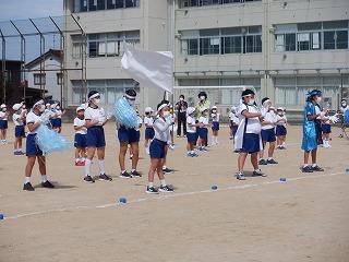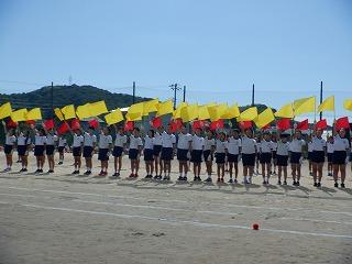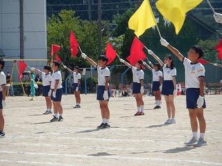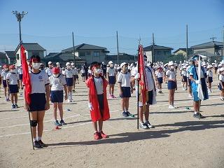 9月27日(火)5・6年生が、クラス別に色分けした鮮やかなフラッグを振りながら、みんなで動きを合わせる最終チェックをしていました。短い練習時間でも、動きを覚え頑張る5・6年生に、高学年らしい頼もしさを感じました。本番でも、みんなで揃った美しい演技を期待しています。
