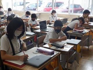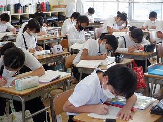 9月22日(木)学校訪問・3限目の様子です。教育委員会の方々に見られている中でも、いつも通りに一生懸命に取り組んでいました。