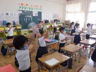 9月13日(火)1年生が、運動会のダンス練習を感染防止のためクラスごとにしていました。お休みの間もクロームブックの動画を見ながら練習してきたのでしょう。赤組の子も白組の子も、リズムに乗って楽しく踊っていました。