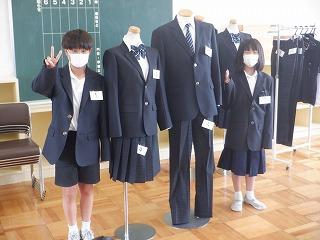 9月14日(水)4・5・6年生が、津幡町立中学校の制服アンケートに答えました。子ども達は、展示された2点のサンプルの特徴を先生から聞いたり、代表児童が試着した制服を見たりしながら、グーグルフォームで回答していました。どちらも素敵な制服なので、迷いながらも楽しそうに選んでいました。