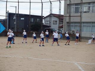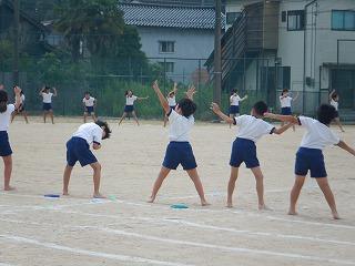 準備体操は、体育委員会児童の動きに合わせ、全員で気持ちをそろえて体操していました。