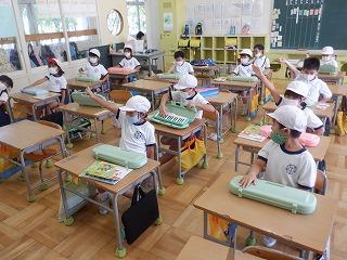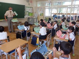 9月16日(金)鍵盤ハーモニカの講師をお迎えして、1年生の講習会を行いました。コロナ禍での講習なので、飛沫が飛ばないような吹き方を教えていただき、感染防止しながら教えていただきました。子ども達は、好きな曲を演奏できるようにと、楽しみながら練習していました。