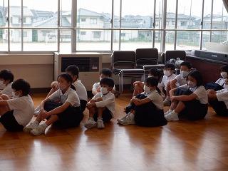 9月28日(水)中条東こども園の年長さんが、低学年ダンスの練習を見にきてくれました。どの園児も持参したござにきちんと座って見てくれているので、1・2年生たちは、いつもよりも張り切って踊っていました。