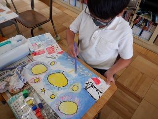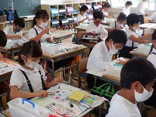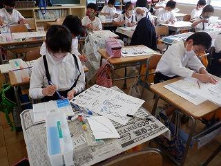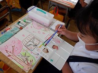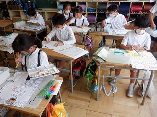 9月21日(水)3年2組の子ども達が「あの日、あの時の気持ち」をテーマに、心に残った思い出を表す水彩画に取り組んでいました。自分が表したい気持ちを絵の構図や水彩の色合いでどう表そうかと、一人一人考えながら活動していました。