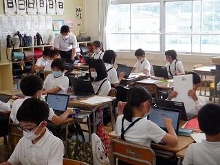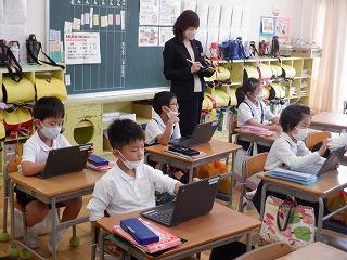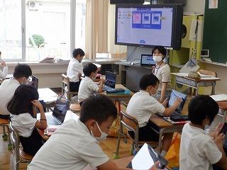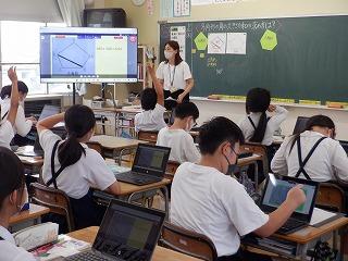 10月14日(金)町教育委員会の指導主事をお迎えして、2年1組で算数科の研究授業を行いました。この日は、三角形・四角形・どちらでもない形の3種類に弁別する学習でしたが、子ども達は、クロームブックを操作しながら自分の考えをもち、発表していました。